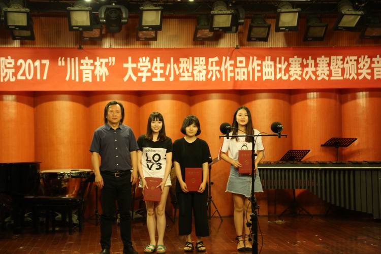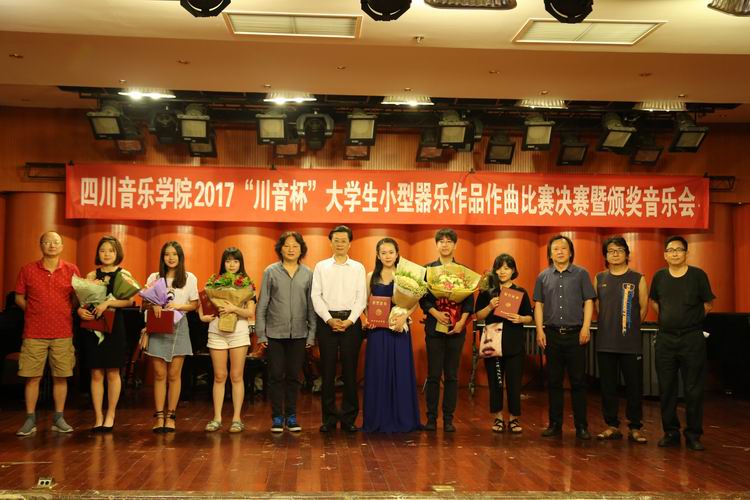 2017年5月27日下午,beat365在线唯一官网“2017川音杯大学生小型器乐作品作曲比赛”决赛暨颁奖音乐会在聂耳音乐厅成功举办。本届比赛由专家组成的评委会经过初评和复评,有11部作品入围决赛。决赛暨颁奖音乐会由beat365在线唯一官网院长林戈尔教授,beat365在线唯一官网作曲系系主任杨晓忠教授,beat365在线唯一官网作曲系副系主任郭元教授,beat365在线唯一官网作曲系昌英忠教授,beat365在线唯一官网作曲系黄旭副教授五位评委组成的终评评委组对入围决赛的作品进行现场打分。经过评定,最终获奖名单如下: