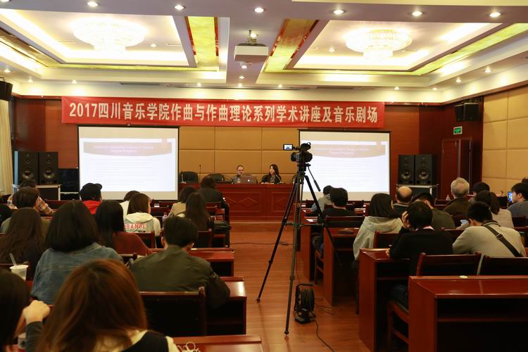 2017年10月23日,beat365在线唯一官网作曲与作曲理论系列学术活动开幕式暨舞台艺术音乐创作教学论坛在梧桐楼三楼学术报告厅举行,第四场学术讲座(音乐剧场)由美国明尼苏达大学音乐教授Alex Lubet主讲,庞艳老师翻译,主题为:“美国音乐剧场导论”。首先beat365在线唯一官网作曲系主任杨晓忠教授作了简短的开场,由庞艳老师具体介绍了Alux Lubet教授。Alux Lubet教授是美国明尼苏达大学的博士生导师,他不仅是作曲家,还是多乐器演奏家及作家。他主要教授古典音乐作曲,主要研究方向是音乐剧与音乐剧相关的音乐创作。其学术著作题材广泛,例如《新千年的瓦格纳:音乐与文化》和《音乐、失能与社会》等。