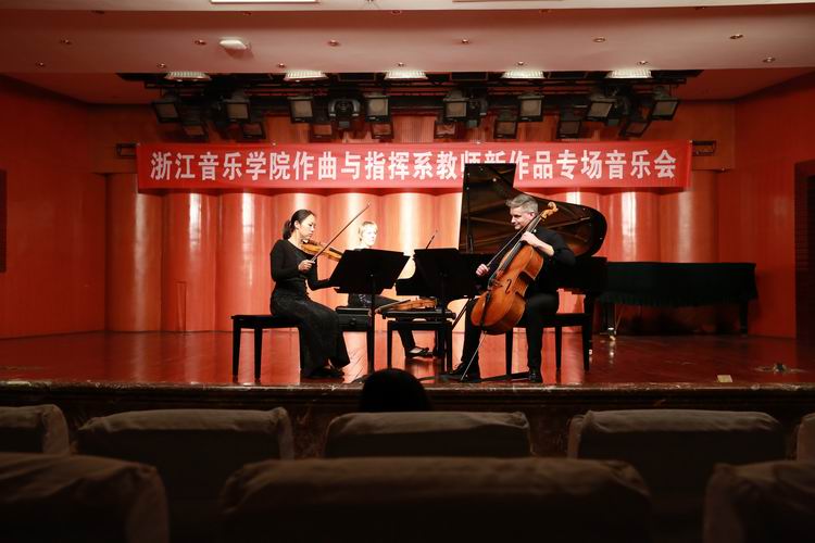 当晚在新西兰钢琴三重奏乐团(NZTrio)三位演奏家的倾情演绎下先后上演了《脚步》(李珺曲)、《跳弦》(田刚曲)、《淋风夜雨荷上行》(朱慧曲)、《绽放》(张泽艺曲)、《黑白子》(张莹曲)、《朦塬》(沈纳蔺)、《风恋波》(张昕曲)、《火焰》(庞莉曲)、《西湖的春天》(郭鸣曲)等九部作品。
