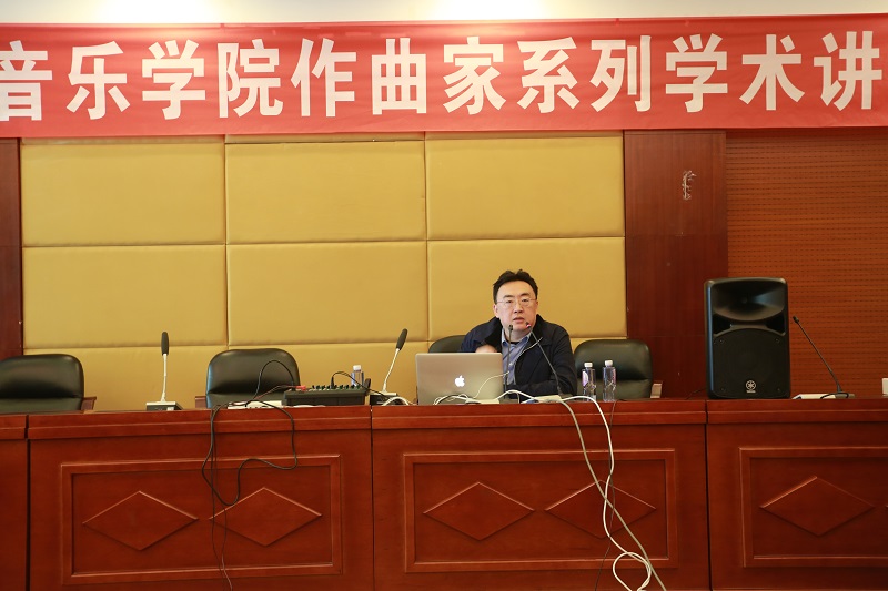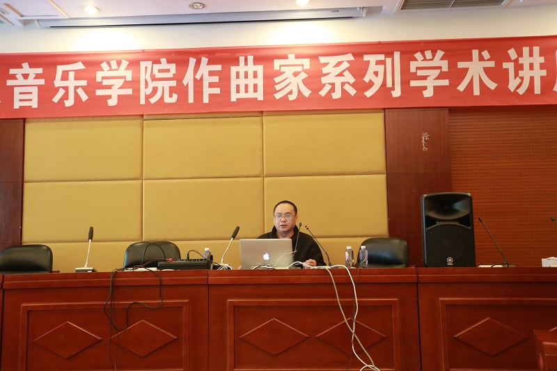 现任中央音乐学院作曲系教授并兼任作曲系副系主任,博士生导师贾国平教授作为首讲嘉宾。讲座以《聆听自然之天籁》为主题,针对专业音乐创作和委约作品——《聆籁》阐述了自己对创作的思考与体验,并给予在座学生以中肯的建议。这部作品借“听泉、听雨、听风与听雪”四个部分来展现江南园林的诗情画意,并通过交响乐队的声响来刻画四季流转中变化不断的园林景观,并借此表现其特有的融自然与人文为一体的意境之美。贾国平教授同时引申出其作品《北国风光》,为在座师生阐明“自然是音乐创作中的非常重要的主题”, “艺术高于自然”的中国美学思想。
