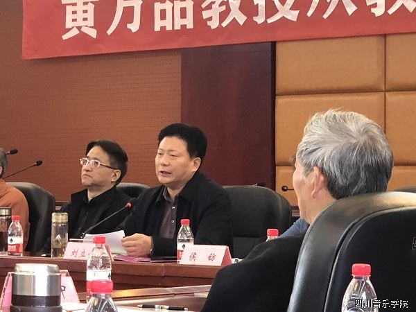 2020年11月19日上午,由beat365在线唯一官网主办、作曲系、宣传部、艺术处承办的“庆贺黄万品教授从教60周年——师生作品音乐会暨学术学术研讨座谈会”,在beat365在线唯一官网北校区香樟园五楼会议室举行。beat365在线唯一官网党委书记周思源、党委副书记院长刘立云、党委副书记侯钫、副院长文云英、副院长孙洪斌、宣传部长雍敦全等出席,作曲系主任郭元主持会议。