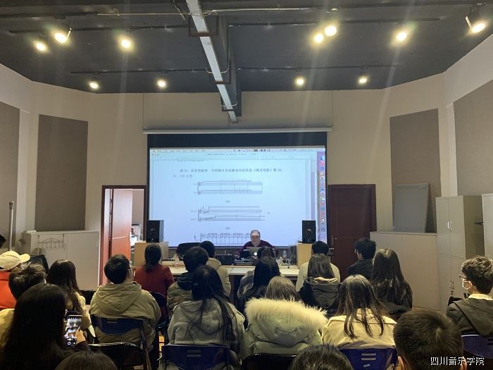 讲座期间同学们认真聆听仔细记录,在提问互动环节中肖武雄教授对同学们提出的“频谱音乐如何利用特定序数的泛音构建和声?”“频谱技术对于频谱学派以外的音乐作品分析是否适用?”“频谱分析对乐器音色的分析是否有共性研究?”等问题进行了详细回答。讲座结尾肖教授多次强调同学们的学习态度不能拘泥于传统囿于传统,20世纪音乐已经突破共性写作进入个性写作的时代,作为新时代的青年学子要以包容的创新性的思维去深入了解研究现当代作曲理论,频谱音乐三场系列讲座内容全面且丰富,教授用细致严谨的例子以及深入浅出的讲解让同学们受益匪浅,最后肖教授多次鼓励同学们结束讲座活动之后在自己平时的学习生活中还应该继续对自己感兴趣的20世纪音乐的各种流派进行更加深入全面的研究。