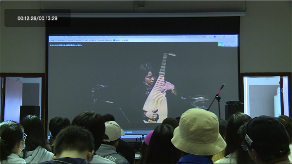 讲座的下半场,吴蛮教授讲述了与作曲家合作过的一些曲目的经历,尤其与著名作曲家谭盾的琵琶协奏曲中的演奏经历。在观看了吴蛮与作曲家谭盾合作的《鬼戏》作品后,与同学们讨论了作曲家创作风格思路的想法。在杨晓忠教授的指导下,吴蛮教授和同学们在“作曲风格是如何形成?”这一问题上展开了讨论。最后讲座在和谐地讨论中结束。
