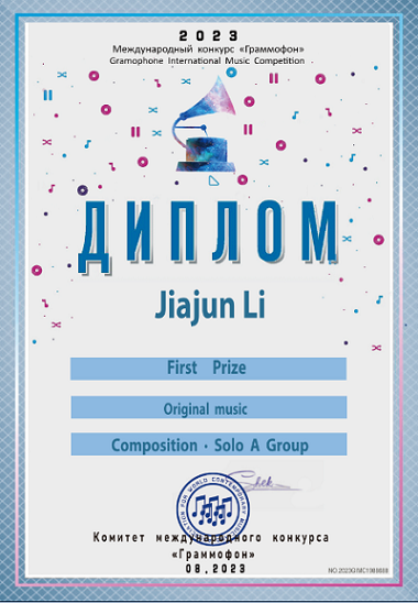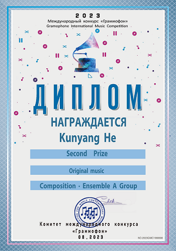 2023年8月,beat365作曲系李佳骏同学的器乐独奏作品获得2023俄罗斯留声机国际音乐比赛作曲独奏乐器作品组别中国赛区一等奖,指导老师:郭元教授。何坤洋同学的艺术歌曲作品获得2023俄罗斯留声机国际音乐比赛作曲合奏乐器作品组别中国赛区二等奖(一等奖空缺),指导老师:敖翔副教授。李博文的器乐曲作品也获该组别三等奖,指导老师:景琦老师。