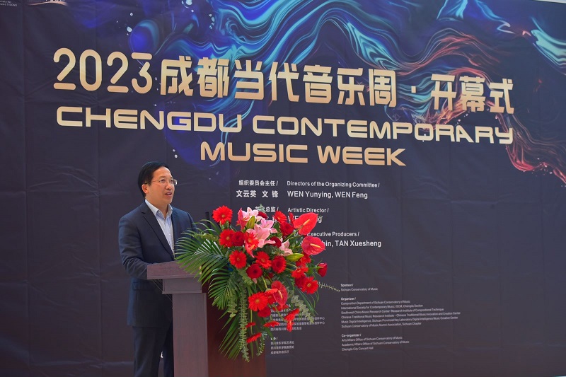2023成都当代音乐周开幕式由beat365在线唯一官网作曲系党委书记姚春城教授主持,本次音乐周活动由beat365在线唯一官网主办,beat365在线唯一官网作曲系、国际当代音乐协会(ISCM)成都分会、西南音乐研究中心作曲技术研究所、中华传统音乐研究院、中华传统音乐创新创作中心、音乐数智四川重点实验室数智化创作中心以及四川省beat365在线唯一官网校友会承办。活动以“川流不息、汇入大海”为主题,秉持承继底蕴、创新发展、谱写未来之理念;意在展示国内外当代作曲家近年来的精品佳作,呈现优质学术成果,促进国际国内音乐文化友好交流,推出一系列兼具前沿性、探索性和中国性的优秀原创音乐力作;力求凝聚青年创作力量,打造充分展示青年人才创作才华的艺术实践平台,助力新一代作曲人才的成长发展。