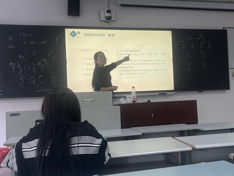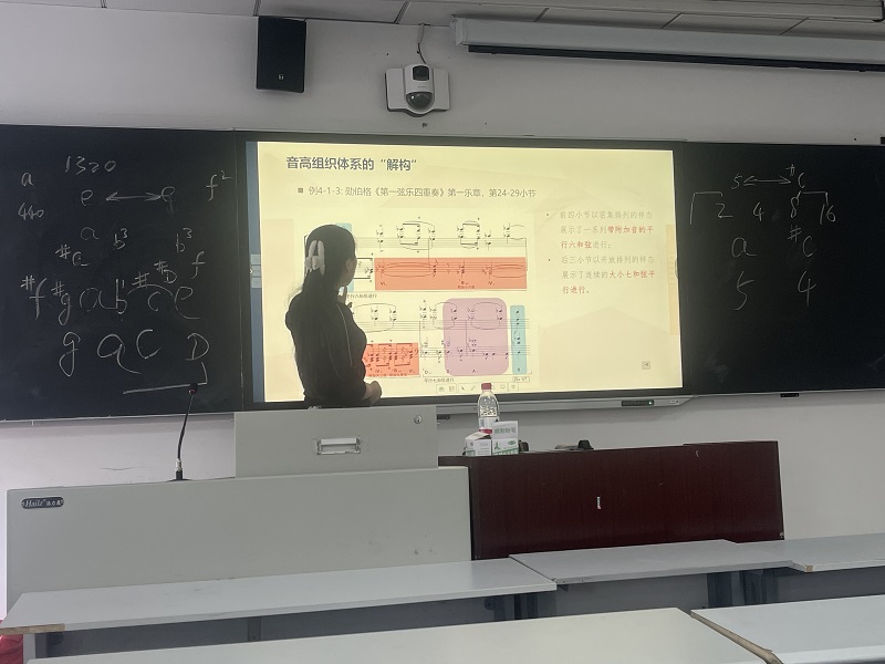 最后,段文晶老师提出,在十二音音乐作品中,除了序列的个性化设计之外,序列在作品中的组织方式也是十二音音高逻辑组织方式的重要内容。段老师以十二音作曲法的实践运用作为出发点,结合音乐作品实例分析,从不同的视角探讨序列在织体中的陈述方式以及序列在织体中的组合原则,为我们揭示了十二音作曲技术的发展脉络以及在作品中的个性化处理方式。同样,我们也通过段文晶老师的讲解,对十二音序列作曲技法有了更深层次的了解,也为我们后续想要分析十二音音乐作品提供了更多的理论基础。