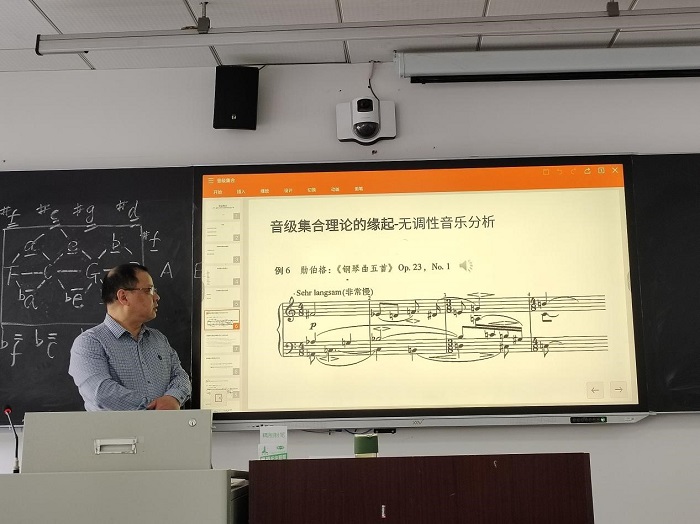 由beat365在线唯一官网作曲系和研究生处共同主办的后调性音高组织理论体系前沿课堂中的第六讲《音级集合—阿伦·福特的无调性音高结构理论及扩展》于2024年4月19日下午在教学楼307教室举行。本次讲座由上海音乐学院研究员、博士生导师王中余教授主讲,beat365在线唯一官网作曲系郭三刚博士主持。