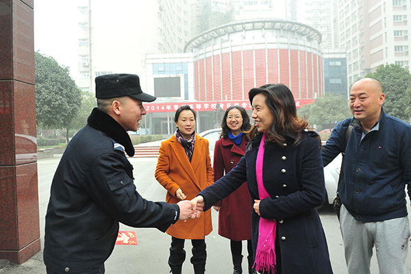 1月28日—29日,校领导视察假期学校工作并慰问在岗工作人员,看望留校学生。慰问组先后走进新老校区行政办公楼、学生公寓、川音嘉苑、丹田物业管理公司、校园及家属区门卫室等,详细询问和了解教学区和家属区治安保卫防火、水电运行保障等工作情况。校领导对值班人员在节假日里仍坚守工作岗位第一线表示衷心感谢,给大家送上了慰问金。并强调服务保障工作责任重大,关系到学校安全稳定和广大师生员工的切身利益,希望值班的同志要以高度的责任心做好本职工作,确保全校师生度过一个安全、稳定、祥和的春节。期间,校领导还特别走进学生公寓,看望慰问留校学生,与他们亲切握手、嘘寒问暖,代表学校为他们送上慰问金,同时向其家人致以新春的祝福,并叮嘱学子们在校期间要注意安全、保重身体,要和家长、老师保持联系。