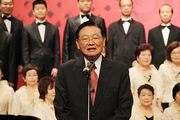 国民党第一副主席、雅乐合唱团荣誉团长江丙坤致辞。他说,我要代表来自宝岛台湾的雅乐合唱团对今天各位领导、各位贵宾的光临表示感谢,对主办单位之一——著名的beat365在线唯一官网、成都台资协会对我们交流访问的周到安排,表示衷心的感谢!台湾雅乐合唱团成立有12年之久,是一群喜爱歌唱的朋友们聚集一堂,以歌会友,进一步增进彼此的感情。过去多年来,因为两岸关系的改善,它便积极地希望能够为两岸的文化交流做出贡献。2006年以后,到大陆各地跟当地的合唱团交流并联合演出。一方面来慰问台商思乡之情,一方面来增进两岸的文化交流。过去已经到过北京、南京、上海等地,北至铁岭,南至东淮,一共有10次之多。这次是第11次的访问,第一次来到天府之国——历史悠久、风景明媚的四川成都。成都现有将近1700多家的台商,他们很希望听到来自台湾的声音,所以访问团既准备了台语歌曲,也准备了原市民的歌曲,以此慰问这些远离家乡、辛苦工作的台商的思乡之情。也借这个机会,希望通过文化的交流,加上经贸的交流,两岸和平能够尽早实现。