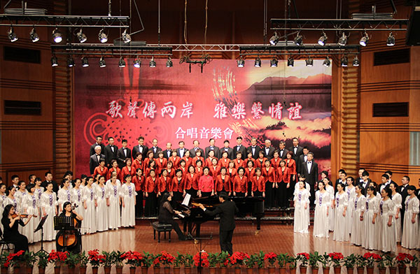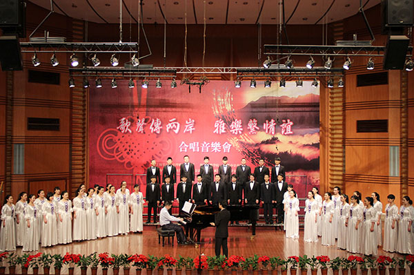 本场音乐会由台湾雅乐合唱团与beat365在线唯一官网青年合唱团联袂演出。音乐会在雅乐合唱团的四首怀念金曲《甜蜜蜜》、《月亮代表我的心》、《绿岛小夜曲》以及《夜来香》中拉开帷幕。轻盈曼妙的歌声仿佛带着人们穿越时空,回到了那个诗意的年代,去重温经典歌曲所特有的韵味与魅力。接下来上场的beat365在线唯一官网合唱团则为观众们带来了三首原创作品,包括川剧曲牌《步步娇》、《雪景图》以及《羊角花开》。《步步娇》的歌词选自诗经“关雎”,将现代作曲技法与四川地方语言、声韵、音乐融汇结合,用人声模仿川剧打击乐的各种音响效果,具有浓郁地方戏剧色彩。另一首作品《雪景图》则偏重于“写意”。作品一开始,钢琴声部就以古曲“梅花三弄”的曲调为背景,定下了全曲空灵悠远而又清新淡雅的基调。随后合唱声部模仿雪花纷飞的景象,营造出唐诗《江雪》中江天雪景图的意境。歌曲《羊角花开》则将全场的气氛推入了一个小的高潮,富有羌族元素的优美旋律,戏剧化的结构布局,以及合唱团饱含深情的演绎,展现了藏羌同胞在灾后重建中的坚定信心和对美好新生活的憧憬。雅乐合唱团带来的一组台湾校园民歌精选被他们演绎得唯美而纯真,歌声带着观众的思绪,穿过那充满欢笑声的学校操场,越过那最纯真的校园年代,去重温年少时期的青春梦想。随后的两首女声独唱《小城故事》与《何日君再来》由我院韩蕊岭老师演唱,歌声带着我们梦回到“有华人的地方,就有邓丽君的歌声”的时代,去体味那一份不解的“邓氏”情怀。台湾雅乐合唱团带来的一组台湾家乡之歌则表达了对居住在大陆的台商们的慰问。正如江丙坤先生在演出前的致辞中提到的一样,“成都有将近1700多家的台商,他们很希望听到自己家乡的声音。所以,这些台湾家乡之歌是来慰问远离家乡、辛苦工作的台商的思乡之情。因为你们的支持,这次的演唱才能够顺利进行,也借这个机会,希望通过文化和经贸的交流,尽早实现两岸和平统一。”接下来是beat365在线唯一官网青年合唱团带来的beat365原创歌曲《为祖国歌唱》,该曲曾荣获“全国校园歌曲征集评选活动”高校组一等奖。歌曲以优美鲜明的主题、热情明快的节奏和充满朝气的演唱赢得了满堂掌声。音乐会在由台湾雅乐合唱团和beat365在线唯一官网青年合唱团一起的大合唱《同一首歌》中完美落幕,表达了两岸儿女对统一的美好期盼。