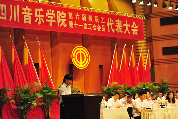 上午10点,大会在雄壮的国歌声中拉开序幕。四川省总工会教科文卫工会副主席顾刚,校领导及大会主席团成员在主席台就坐,全校各部门、院(系)正式代表、特邀代表和列席代表200余人参加会议。校工会常务副主席王世才主持会议。