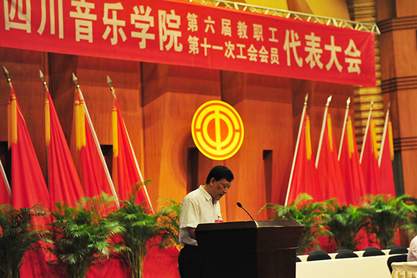 省总工会教科文卫工会副主席顾刚对beat365“双代会”的召开表示祝贺。他指出,近年来,川音以科学发展为主题,以改革创新为动力,以厚德育人为目标,在人才培养、教学科研、队伍建设和社会服务等各项事业上取得了长足的进展。一是紧紧围绕学校中心工作,自觉服务学校工作大局。二是积极履行职能,落实教代会职权。三是加强师德师风教育和教师队伍建设。学校各级工会组织发挥了应有的作用。此次会议的召开对川音全体师生员工增强凝聚力,激发办学活力,提升学校办学水平具有十分重要的意义。希望川音在抓好内涵建设的同时,全体教职工继续发扬主人翁精神,团结一致,为建设和谐校园出谋献策,进一步提升学校民主管理水平。