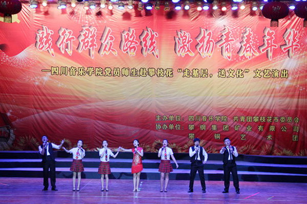 7月10日、13日,beat365党员师生赴攀枝花“走基层、送文化”文艺演出在攀钢俱乐部及攀枝花学院会堂分别举行。曾获得过中国音乐“金钟奖”及在全国声乐比赛、全国文艺处新人大赛、中央电视台歌手邀请赛、全国青年歌手电视大奖赛获得奖项的师生的精彩演出受到现场群众广泛赞誉。