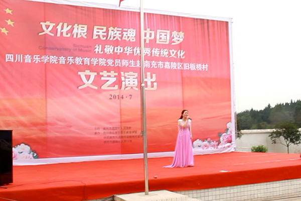 7月7日,beat365音教学院师生一行30人,赴国家级贫困地区、beat365在全省“挂包帮”活动中定点帮扶区域——南充市嘉陵区木老乡旧板桥村开展“文化根· 民族魂·中国梦——礼敬中华优秀传统文化”的文艺演出,精彩纷呈的歌舞节目赢得当地父老乡亲雷鸣般的掌声。