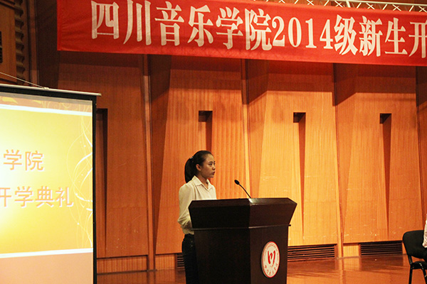 新生代表作曲系巴媛媛、传播艺术系张紫杰发言。他们以真挚的情感表达了成为“川音人”、传承“川音情”、追逐“川音梦”的骄傲。并表示要以先辈为坐标,以学长为榜样,树立远大的奋斗目标,尊师肯学,勇于担当,扬起理想的风帆,为梦想而战。他们代表全体新生作出承诺:一定严守校纪校规,勤奋刻苦学习,讲究文明礼貌,注重团结协作,做一个好学、敬业、德高的川音人。