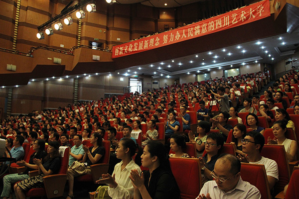 教师代表钢琴系王雁教授、戏剧系教师高品发言。她们说,川音迎来历史上最辉煌、最光明的今天,传统与现代共存,高雅与实用并举,立足四川,走向世界。七十五年的辉煌历程带给全体川音人自豪与荣耀,七十五年的奋发图强描绘出一所具有优良学风和高水平教育质量的高等艺术学府的勃勃生机。作为老师,她们忠告学子们要热爱艺术,有着为艺术奉献的精神;要认真学好各门功课,丰富自己的知识结构,全面提高自己的思想水平和综合素质;要严于律己,勤于思考,端正心智,修缮其身,让自己做一个品德高尚的人。