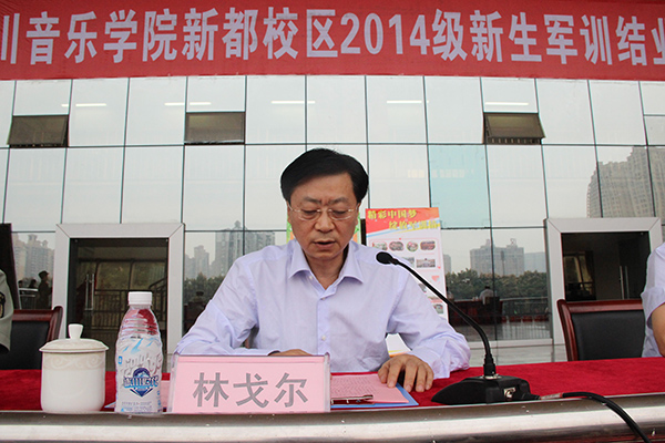 党委副书记、院长林戈尔在大会上作重要讲话。他代表学校对中国人民解放军78098部队军训官兵表示感谢,并祝贺学子们在军训中取得了优秀成绩。他说,广大参训同学不畏艰苦,坚忍不拔,克服诸多困难,努力学习,积极适应,严格要求,以优异的表现完成了进入大学后的第一课。军训的时间虽是短暂的,但对全体同学今后的生活和学习的影响是深远的。希望全体参训同学珍惜这段绿色军营的美好回忆,把部队的优良传统以及首长和教官们的谆谆教诲带回校园,继续坚持内涵发展,树立国际视野,增强国防意识。以创新文化发展新理念为动力,以转变作风为保证,以提高教学质量为核心,着力建设和谐文化校园,为“四川艺术大学”早日挂牌而努力奋斗!