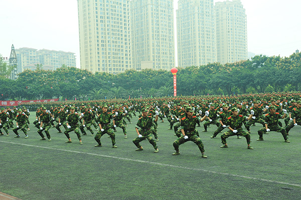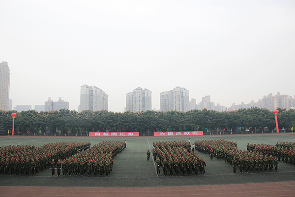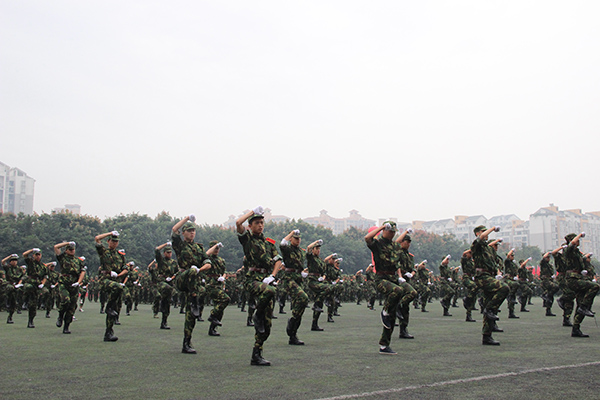 汇报场上,伴随着庄严、激昂的中国人民解放军军歌,三位护旗手护送国旗入场。在分列式中,各受阅方队迈着整齐、矫健的步伐,精神抖擞地依次通过主席台,展示军训成果。学子们精神饱满、步伐整齐、口号嘹亮,斗志昂扬,充分展现当代大学生蓬勃向上的精神风貌。军训学子先后展示了捕伏拳、军体拳、坦克兵体操、捕俘刀等动作表演。他们意气风发、动作规范,赢得了阵阵掌声和喝彩。今年的军训克服了时间紧、任务重、场地分散等不利因素,广大参训官兵和各相关部门尽职尽责,精心组织,科学施训。学子们在训练中发扬“掉皮掉肉不掉队,流血流汗不流泪”的精神和部队纪律严明、令行禁止的优良作风,坚决服从教官的管理,虚心学习各项技能,苦练基本功,用顽强拼搏的奋斗精神、昂扬向上的精神面貌向学校交上了一份满意的答卷。