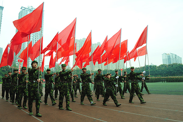 军训结业典礼在雄浑嘹亮的《强军战歌》歌声中圆满结束。