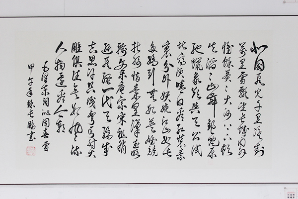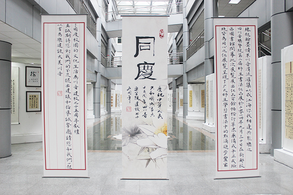 本次书法作品展共展出120幅师生员工的原创作品,形式各异,内容丰富。作品包括楷书、草书、行书、隶属等不同风格,内容以儒学经典、唐诗宋词等传统经典为主,以及毛泽东诗词等。其中,部分书法作品采用传统地方字体,体现了地域文化特征,属于非物质文化遗产范畴。