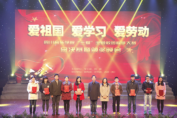 大赛分为专业组和非专业组两个组别,展现了良好的艺术水准。啦啦操《青春律动》为比赛热场。歌剧合唱系表演的《新村蛙歌》赢得掌声一片。现代器乐系孟世豪演唱《夜空中最亮的星》。音乐教育学院选送的任羿衡演唱著名音乐人汪峰作品《我爱你中国》。男声独唱《成长》,由戏剧影视文学系选手王晶带来。作曲系选手钟俊豪演唱原创作品《家》。艺术附中(校本部)参赛选手陈星颖带来2012年《中国好声音》年度亚军吴莫愁作词的《就现在》。声乐二系选送的选手陈倩表演女声独唱《红旗颂》。恢宏的气势,飞扬的歌声,舞动的红旗将全场气氛引向高潮。蒲永鹏男声独唱《当那一天来临》,由民乐系选送。美术学院摇滚歌手胡亚文吉他弹唱《我爱你中国》,他娴熟的技法、激昂的歌声再次引爆全场。戏剧系刘琪丹深情演唱家喻户晓的经典曲目《酒干倘卖无》。她以音乐剧的形式重新诠释了这首歌曲,让观众耳目一新。学生社团文学社、书法社、曲艺社联袂演出《川音情韵》,表现了川音人申办艺术大学的执着追求和建设大美川音的不懈努力。流行音乐学院参赛选手吴奇演唱著名歌手林俊杰作曲的《完美新世界》。舞蹈学院选送的黄天祺女声独唱《第一天》。Struggle组合(庞博、李嘉乐、郑豪)演唱《龙的传人》,手风琴电子键盘系选送。继续教育学院徐永尧、王海峰演唱著名女音乐人萨顶顶作词作曲的《自由行走的花》。刘桥凤、王靖文组合演唱《国家》,声乐一系选送。他们的演唱平实真挚,展现出国家的繁荣富强及国与家的血脉相连。流行音乐学院2012级流行演唱专业学生许馨文压轴出场,演唱歌曲《彩色的黑》。她曾荣获2014“天翼飞young中国梦 校园好声音”全国校园歌手大赛总冠军。经过精彩激烈的角逐,比赛产生了一、二、三等奖,领导们登台为获奖者颁发奖状和奖金。