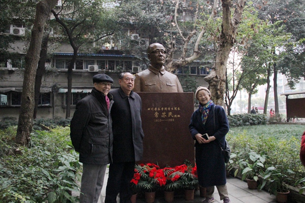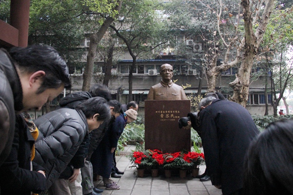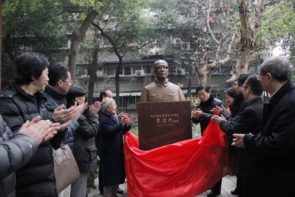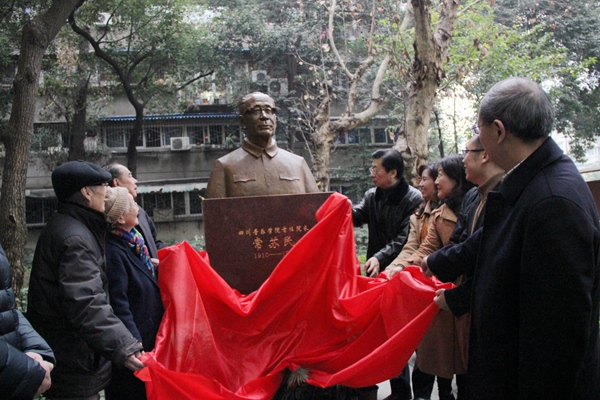 随后,校领导、老领导及离退休教授代表共同为铜像揭幕。所有参加仪式的人员面向铜像三鞠躬,表达对常苏民院长的深切缅怀。常苏民院长敬业奉献、艰苦奋斗的精神将永远激励着川音人求真务实,开拓进取,奋勇向前。