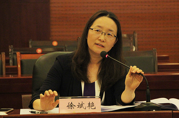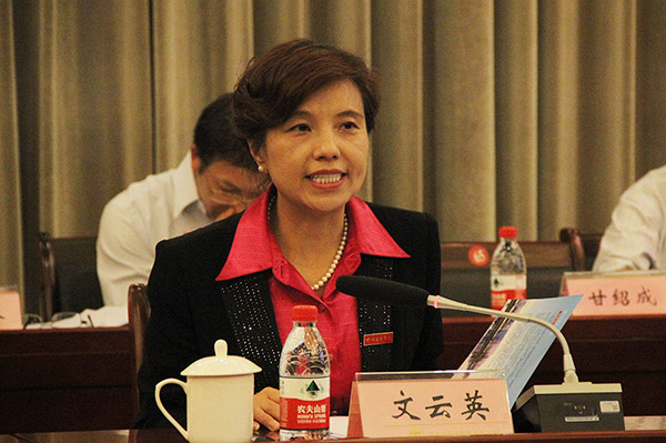 迎检报告会议由党委副书记、纪委书记文云英教授主持。