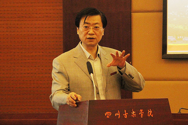 党委书记、院长林戈尔教授在主报告中从硕士研究生培养的有关政策、教育硕士研究生培养工作的领导机构及职能划分、有关教育硕士研究生培养工作的规章制度、招生人数及生源情况分析、教育硕士研究生授课教师与指导教师的构成、教育硕士研究生培养单位的特色、今后的工作思路与举措等七个方面向教指委专家组做了主要汇报。