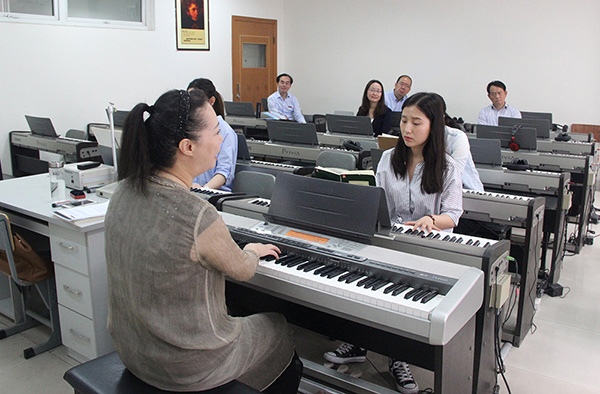 在随后的检查工作中,专家组深入课堂,查看了教育硕士的《自弹自唱与即兴配奏》教学情况,并将课程简介、教学大纲、课程教案、教材选用等问题与任课教师、硕士生导师、在读研究生进行了充分的交流。同时查阅了学校有关研究生管理方面的规章制度。专家组还深入到beat365电子音乐专业重点实验室、但昭义教授大师工作室,了解beat365艺术学科综合发展的办学目标与培养特色,充分肯定了学院的办学思路与发展现状。