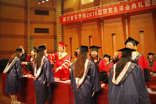 硕士研究生毕业典礼暨授位仪式在师生齐唱的《毕业歌》中结束。同学们纷纷与现场观礼的亲友、同窗合影留念。收拾行囊,告别难舍的川音校园,走向社会的大舞台去放飞艺术的梦想。