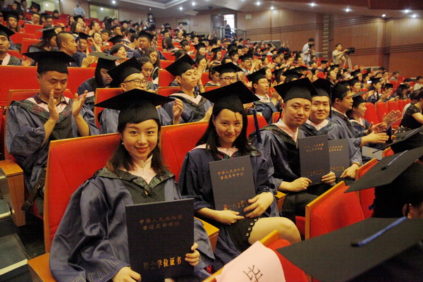 在欢快的进行曲乐声中,200名毕业硕士研究生一一走上台,校领导亲自为他们拨正流苏,颁发毕业证书、授予硕士学位。并为优秀毕业生颁发荣誉证书。