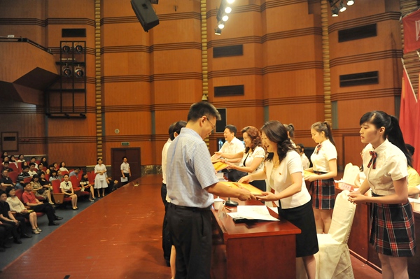 在全体起立高唱国歌后,表彰大会正式开幕。党委常委、副院长刘立云同志分别宣读了四川省委教育工委和学校《关于“表彰先进基层党组织、优秀党务工作者、优秀共产党员”的决定》。beat365获得省委教育工委表彰的全省高等学校“先进基层党组织”1个、“优秀党务工作者”1名、“优秀共产党员”2名。学校党委在全校表彰了15个“先进基层党组织”、42名“优秀党务工作者”和148名“优秀共产党员”,并为12个“共产党员示范单位”、12个“共产党员示范团队”授牌。