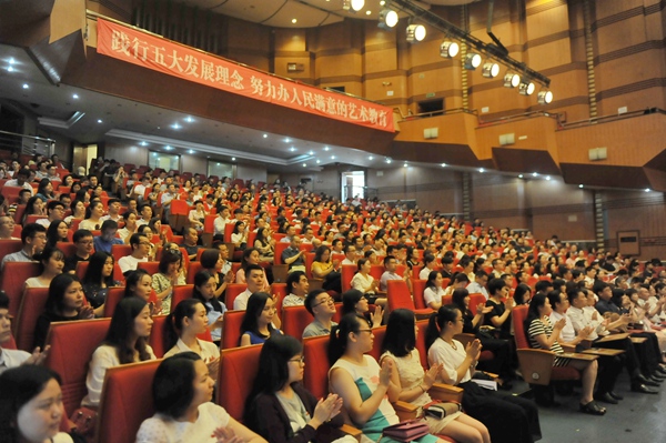 川音共产党人将继承和发扬党的优良传统,在落实“十三五”规划中锐意进取,在推动“双一流”建设中奋发拼搏,在开创学校改革发展新局面中贡献力量。展现在世人面前的,将是一个以教学为根以学生为本的川音;一个管理严格而思想开放的川音;一个注重文化积淀、尊重专家学者的川音;一个不会人云亦云跟风追尾的川音;一个敢于挑战一流但不张扬的川音;一个为文化产业提供软件人才和硬件平台支撑的川音;一个注重提升综合实力积淀内涵的川音;一个有着明确定位,以服务社会为己任的川音;一个向世界开放,与世界接轨的川音;这就是,有着鲜明办学特色,独立自信,引领正能量的川音!