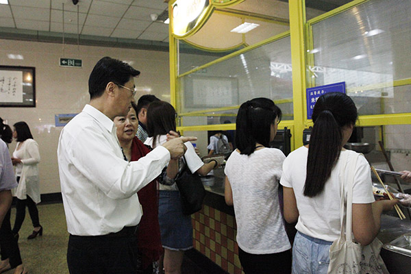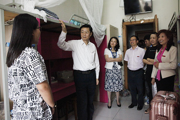 随后,校领导一行驱车赶往二十多公里外的新都校区,走进院系迎新点、缴费处、食堂、宿舍等报到点检查工作进展、慰问服务人员、看望新生及家长。为了更好的服务新生,林书记要求各院系书记、主任今晚要深入新生寝室,做到全覆盖了解每一位新生的基本情况,多与新生交流,了解新生需求,解决实际困难。据悉,已有不少院系负责人召集辅导员、新生以及家长于当日下午召开了新生座谈会。