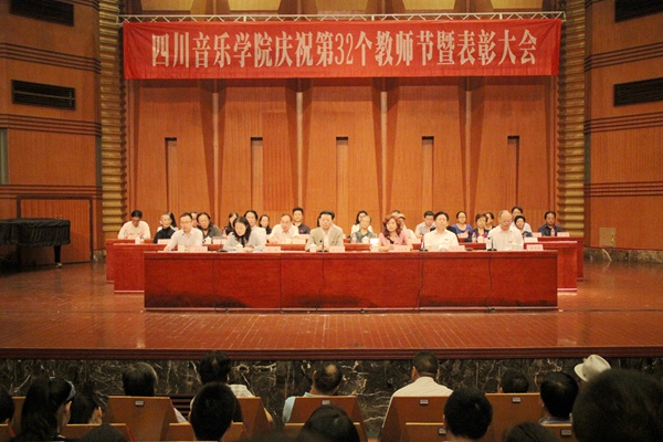 伴随着庄严的国歌,表彰大会拉开帷幕。党委书记、院长林戈尔教授代表学校党委、行政向全体教职员工及离退休老领导和老师们致以节日的祝贺与诚挚的问候,感谢老师们为川音的发展与进步所作出的无私奉献和为川音培养创新型、优秀艺术人才不辞辛劳的教育追求。林书记说,回顾过去的一年,川音抓住了时代机遇,在办学规模、办学层次和办学质量上取得了可喜的成绩,呈现出全面推进、全面提升的新局面:第一,新发展、新布局、新高度。学校围绕以“大力培养适应能力强、技术水平优秀的应用型人才,着力培养在国际国内有一定影响的高、精、尖艺术人才”的培养目标为立足点,进一步深化办学体制改革,走可持续发展的创新型办学之路。以创建一流学科为核心要务、以提升科研水平为中心地位、以全面推进多样化艺术实践为特色战略。融合教学、创作、科研、产业四大方面,开拓出一条“校地结合、产创促进、文艺繁荣、经济转化、产业助推”五位一体为核心的可持续发展之路。第二,教学一流、科研提升、艺术实践。学校以创建一流教学为核心要务,以提升科研水平为中心地位,形成“教研互动、教研助推”的良好局面。学校坚定不移地走人才强校战略,制定了一系列有助于提升教学水平的规章制度,举办了内容丰富、形式多样的教学实践活动,完善师资队伍结构层次,规范考核、资格认定及岗前培训等工作,鼓励青年教师到国内外知名大学进修。学校各级各类科研项目获批准立项大幅增加,科研获奖层次不断提高,包括文化部科技创新、国家艺术基金资助等大批科研项目的开展,充分体现出全校科研能力的稳步提升。学校下一步将为老师们提供更为完善的科研政策支持,确保科研工作的顺利开展。学校坚持不断加强、深入开展艺术实践活动,培养复合型、创新型艺术人才。在刚刚结束的文化部主办的全国声乐展演中,beat365三位老师参演,获得各方好评。这些都充分体现出学校在艺术专业创作、展演方面的实力与优势。当下,学校以成都城市音乐厅建设项目为契机,将建成一批具有示范引领效应,集教学、创作、科研、实践为一体的艺术教学区,邀请国内乃至世界各地的专家、学者来校开展教学、创作和讲座等学术交流活动。深化改革艺术教学与社会实践之间的互动关系,将是川音改革发展的重要工作取向之一。第三,四个实体、九个方便、九个川音。城市音乐厅建设项目以歌剧厅、音乐厅、戏剧厅和室内音乐厅四个实体构成,还建幼儿园、川音大厦、艺术培训中心等。这将使学校的教学设施现状得到极大改善,将大大提高川音在国内、国际的竞争实力与知名度,主要体现在交通畅达、环境改善、一流观摩、学术交流、教学提升、艺术实践、创新创业、科研转换、产业孵化等九个方便上。未来的川音必将成为一个以教学为根、以学生为本的川音;一个管理严格而思想开放的川音;一个注重文化积淀、尊重专家学者的川音;一个不会人云亦云跟风追尾的川音;一个为音乐产业提供软件人才和硬件平台支撑的川音;一个有自我明确目标定位的,以服务社会发展为己任的川音;一个敢于挑战一流但不张扬的川音;一个注重综合实力提升、勇于探索创新的川音;一个向世界开放的,与世界接轨的川音。