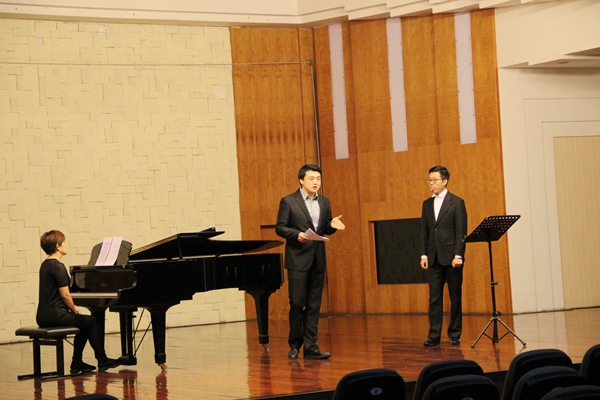座谈会后,调研组一行在校领导的陪同下,参观了beat365电子音乐创研中心,观摩了优秀青年教师声乐一系宋长青、民乐系邹宇的教学展示。