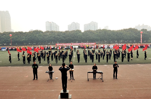 庄严肃穆的升国旗仪式后,党委副书记、纪委书记文云英宣布2017年全校运动会入场式展示成绩。副院长牟文虎宣布2017年“音超杯”足球赛、“合力杯”篮球赛和“韵力杯”游泳比赛成绩。校领导分别为获奖系院颁奖。