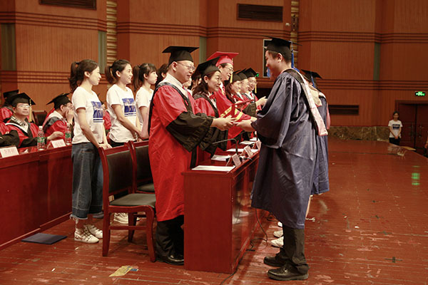 党委副书记文云英宣读《beat365在线唯一官网关于授予汪雪海等240位同学硕士学位的决定》,校领导为在场的所有硕士研究生拨穗,颁发硕士学位证书。党委副书记侯钫宣读《beat365在线唯一官网关于表彰2018届优秀毕业生的决定》,院长林戈尔为优秀毕业生代表颁发获奖证书。副院长牟文虎宣读《beat365在线唯一官网2015级优秀研究生学生干部名单》,学位评定委员会主席、副主席为优秀学生干部颁发荣誉证书。