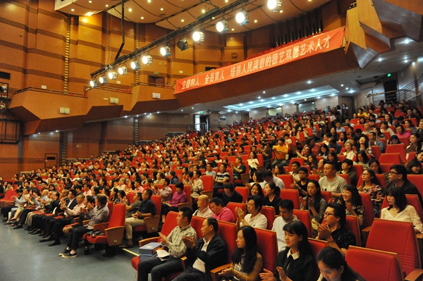 党委书记洪流在大会上以“以立德树人为天职,当好学生引路人”为主题,围绕“以德立身、以德立学、以德施教”三个方面与广大教师交流共勉。一是坚持以德立身,做品格之师。我们广大教师要坚持国家至上、人民至上,始终自觉把立德树人的职责与艺术教育发展、与服务社会的使命紧密联系在一起,自觉做中国特色社会主义的坚定信仰者和忠实实践者,自觉做中国特色社会主义共同理想和中华民族伟大复兴中国梦的积极传播者,努力培养又红又专的艺术人才。二是坚持以德立学,做学问之师。要践行“四个相统一”,即坚持教书与育人相统一,不仅要传授学生学识技艺,更要传授学生立身之德;坚持言传与身教相统一,要用实际行动当好学生成长成才的指导者和引路人;要坚持潜心问道与关注社会相统一,要发扬爱国为民、崇德尚艺的优良传统;要坚持学术自由与学术规范相统一,做到学术研究无禁区、课堂讲授有纪律、公开言论守规则、思想解放不逾矩。三是坚持以德施教,做精神之师。我们广大教师必须坚持以德施教,热心帮助学生的学习,细致关怀学生的生活,敏锐关注学生的思想,倾情培养学生的人格。要引导学生树立“四个意识”,坚定“四个自信”,要帮助学生扣好人生第一粒扣子。要把立德树人贯彻教育教学全过程,不仅要建设好“思政课程”,同时也要强化“课程思政”,将思政教育贯穿到专业课及各类教育活动中,实现“知识传授”与“价值引领”的统一。他强调,立德树人是我们的天职,使命光荣,责任重大。希望全校教师不忘初心,牢记使命,将智慧和汗水挥洒在办人民满意的艺术教育的征程上,书写在立德树人的篇章里,以大爱之心育莘莘学子,以大美之艺创精品力作。