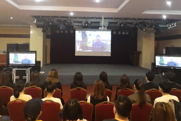 校团委组织学生干部、学生党员、学生代表50余人上午九点在校举行庄严的升旗仪式,随后在学生活动中心集中观看庆祝大会。学校师生员工分别在家里、子女学校、机场、寝室、教室、实习岗位通过电视、电脑、手机、校园广播等多种形式收听收看了庆祝活动。师生们看后纷纷表示,在中国共产党的领导下,我们正走在社会主义现代化的康庄大道上,我们有十足的信心相信中国梦一定能够实现,中华民族伟大复兴一定能实现!!