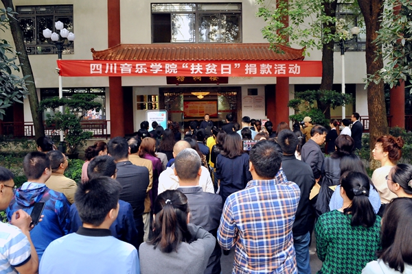 周思源同志在活动现场向全院教职工发出倡导:今年是新中国成立70周年,是深入学习贯彻习近平新时代中国特色社会主义思想和党的十九大精神的重要一年,也是决胜全面建成小康社会第一个百年奋斗目标的关键之年。我们组织开展“扶贫日”捐款活动就是要进一步引导全校教职员工关注贫困问题、关爱贫困人口、关心扶贫工作,进一步动员大家积极参与脱贫攻坚,形成人人皆愿为、人人皆可为、人人皆能为的良好氛围。“扶贫日”捐款活动是一项政治工程、一项民心工程,也是实现高质量发展的拓展工程,责任重大、使命光荣。希望大家积极参加,用实际行动彰显川音人践行“乐善好施、扶贫济困”的中华传统美德,传播“慈善与关爱”正能量。