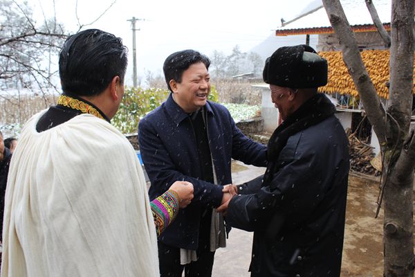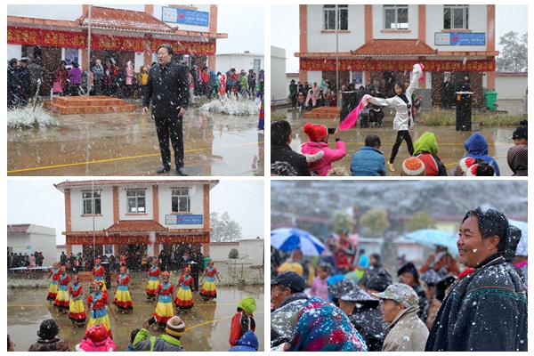 12月4日,刘立云院长一行来到距离县城100余公里的beat365定点帮扶村——小金乡碉房村,顶着严寒,冒着大雪在村民活动中心广场开展“走基层、送文化、送温暖”慰问演出和十九届四中全会精神宣讲活动。并考察了村活动中心,慰问了贫困户和学校挂职扶贫干部,向贫困户发放了慰问物质36套,向小金乡中心小学捐赠了价值20000元的乐器。