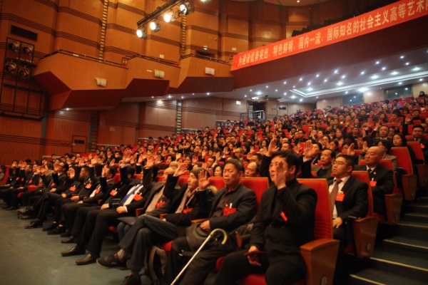 大会号召,全院各级党组织、全体党员干部和广大师生员工,要更加紧密地团结在以习近平同志为核心的党中央周围,在学院新一届党委的领导下,以习近平新时代中国特色社会主义思想为指导,全面贯彻党的十九届三中、四中全会和省委十一届六次全会精神,落实全国全省教育大会精神,齐心协力,励精图治,开拓创新,真抓实干,开创学院美好的未来,为建设优势突出、特色鲜明、国内一流、国际知名的社会主义高等艺术院校而努力奋斗!