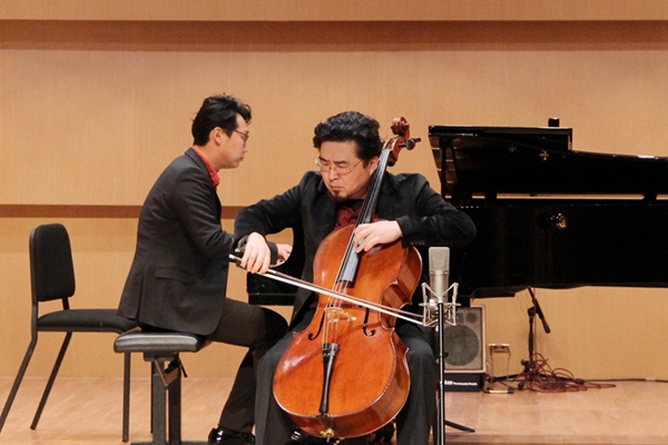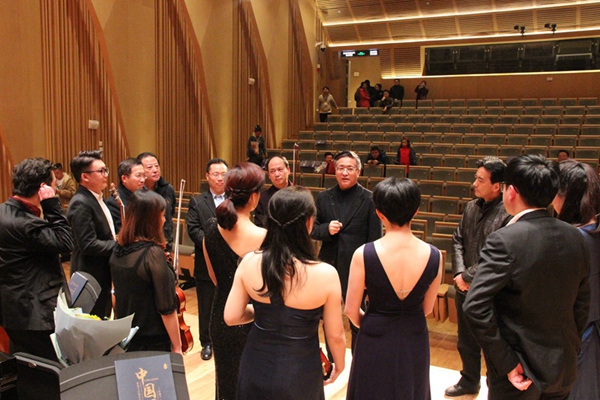 音乐会结束后,党委书记周思源上台慰问演职人员,并对博士们今后在川音的教学、科研、实践工作作出了要求。