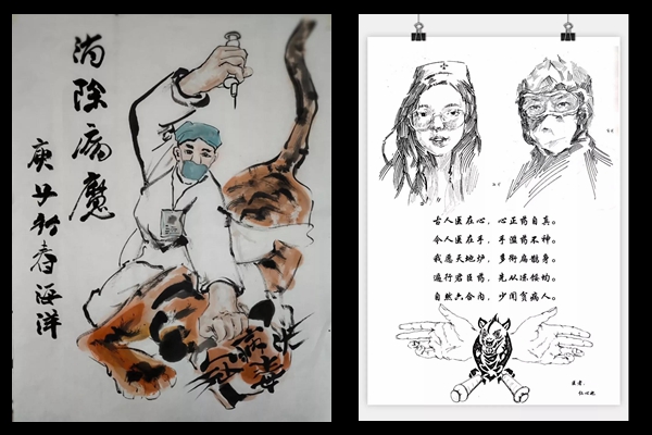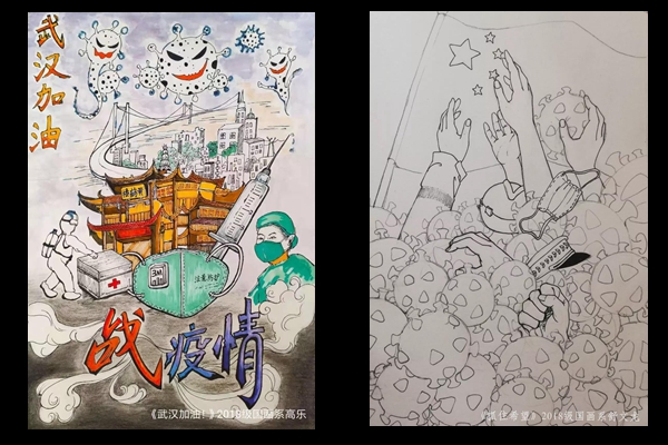 成都美术学院积极响应学校党委的号召,党政班子齐抓共管,10个教学系系主任主抓落实,组织师生开展主题创作活动,围绕疫情防控这一主题,以中国画、油画 、漫画、素描 、人物、海报等形式,呈现特殊时期里的人间大爱,用美术作品彰显艺术院校师生的责任与担当,以强烈的责任感与使命感共筑防控疫情的坚强堡垒。