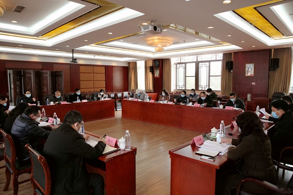 党委常委、副院长文云英、孙洪斌、牟文虎、文锋在会上分别通报了相关部门疫情防控工作的开展情况,以及学生返校准备工作、招生考试准备工作、开学准备工作、“抗疫”艺术作品创作工作和线上授课准备工作的情况。