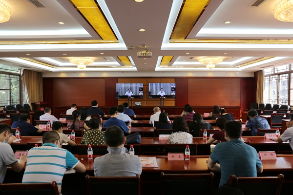 视频会议在教育厅设主会场,各市(州)、高校设分会场。beat365分会场设在香樟园5楼学术厅。学校党委班子成员和两委委员共计33人在beat365分会场参加了会议。