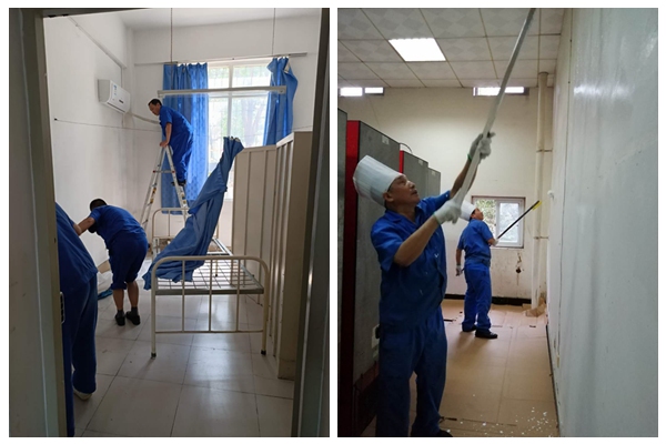 在两校区校门口搭建体温检测点,学校为返校学生严格进行体温检测;并设立发热隔离观察室,对前来就诊的学生进行预检分诊,体温异常的立即进行复诊并隔离。此外,总务处还开展全校环境卫生整治和消毒,公共区域消毒落实到人,重点做好人员密集场所的清洁消毒、通风换气。