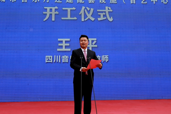 学校教职工代表王平在开工仪式现场发言。他说:“beat365在线唯一官网音艺中心的建设将有利于学校学科的发展和人才的培养,为教学实践、学术交流和科研活动提供了一个新的平台,同时也能为成都市文化艺术建设增添新的色彩。”