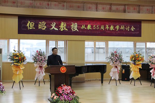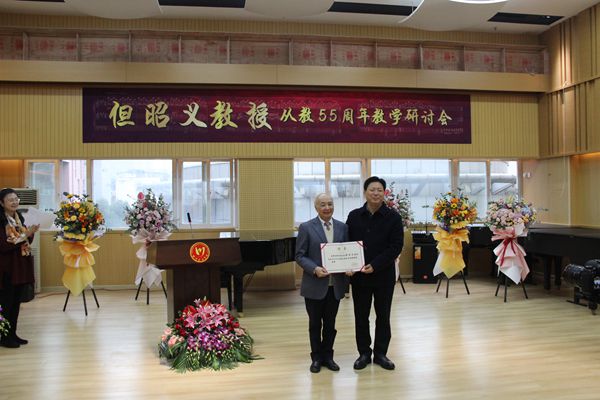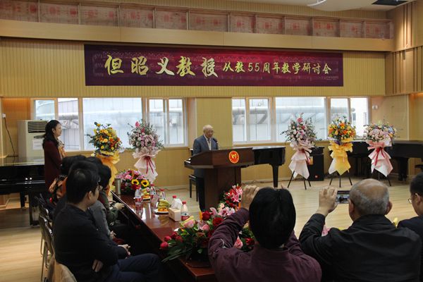 11月5日, 但昭义教授从教55周年教学研讨会在我院琴房大楼6楼排练厅隆重举行。学院党委书记周思源,党委副书记、院长刘立云,党委副书记侯钫,党委常委、副院长文云英、孙洪斌、牟文虎、文锋,党委常委雍敦全、胡咏梅出席会议。但昭义教授及夫人,中央音乐学院,中国音乐学院,深圳艺校,深圳钢琴协会嘉宾,及我院钢琴系、音教学院师生代表,老教授代表,但昭义教授国际国内比赛获奖学生等80余人参加研讨会。研讨会由钢琴系党总支书记、系主任王雁教授主持。